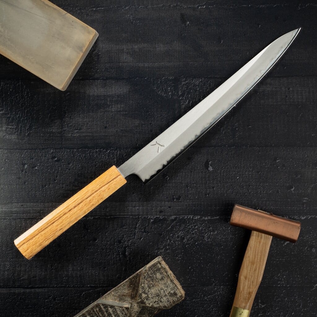 Uanset om det er en Sujibiki kniv eller Yanagiba kniv, vil kniven blive nænsomt trukket igennem fisken i lange træk uden at presse. Dette vil give dig det meste delikate fiskekød i skiver med den mest fantastiske smag.