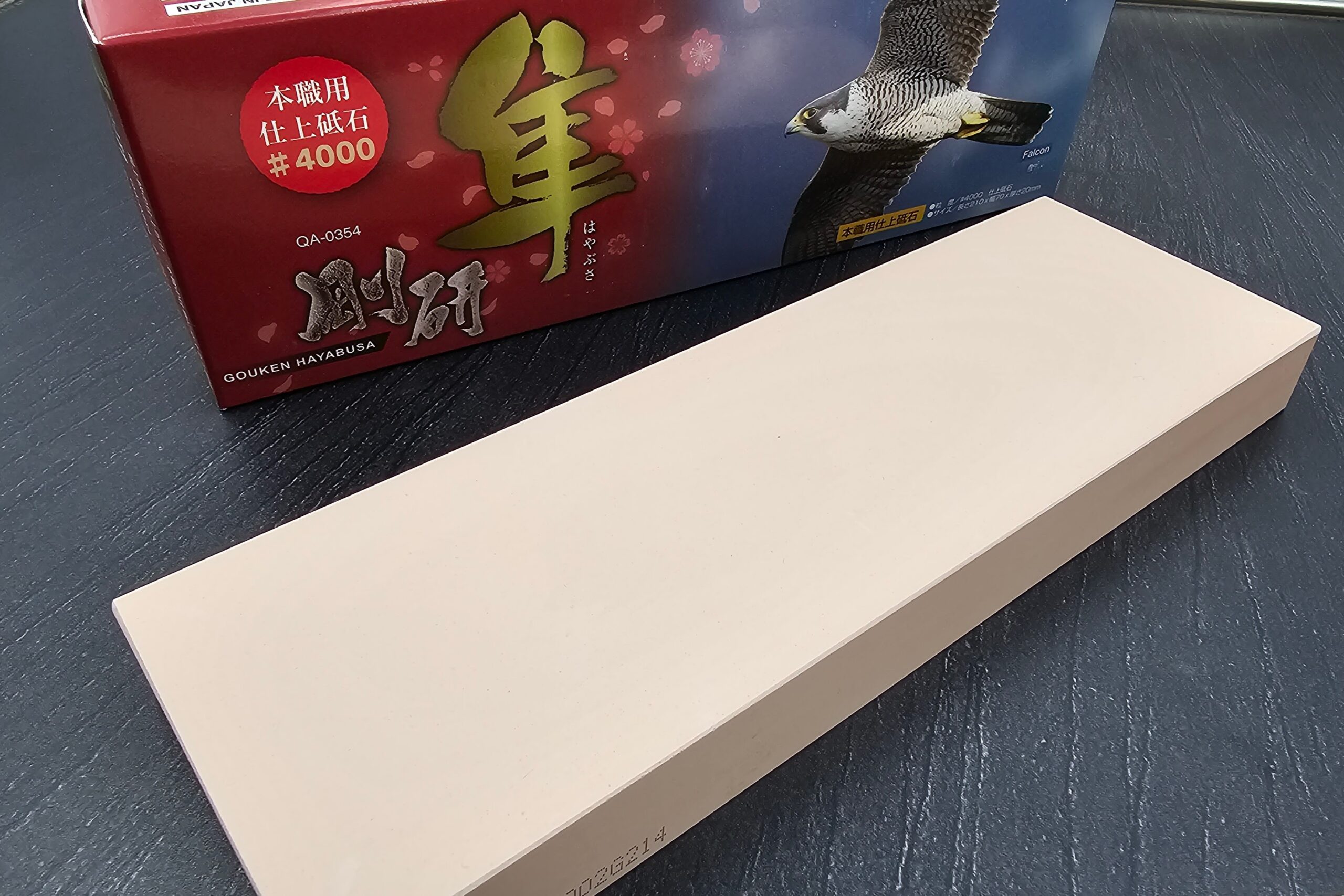 Hayabusa er en del af Gouken-serien fra Naniwa, som er en serie der kombinerer rigtig god kvalitet og samtidig en pris der er meget fornuftig. Langt de fleste vil finde stor tilfredsstillelse med at afslutte slibningen på denne sten, og så evt. en læderstrop bagefter for let polering. Hayabusa betyder Falk på Japansk, og hvorfor den har fået netop det navn, tjaaa, det ved vist kun Naniwa…