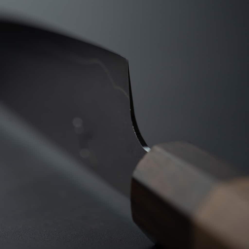 Jeg er jævnligt i kontakt med de dygtige smede i Japan der smeder råstålet for mig, og de har oplevet problemer med overfladen som tidligere var på denne petty, derfor er den nu med en mere “ren” finish/overflade, men samme fantastiske skæreevne som før.